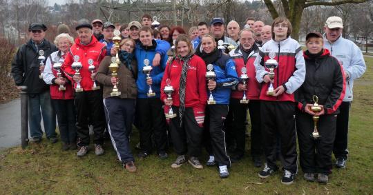 So konnten am Sonntag alle Runden gespielt werden und es fielen auch sehr ordentliche Ergebnisse. Nicht zu schlagen war die erste Mannschaft der Kölner, die sowohl auf Beton als auch auf Eternit siegte und damit auch die Kombiwertung gewann. Das mit Abstand beste Kombi-Ergebnis spielte der Ex-Wittener Stephan Behrens, der die Herrenkonkurrenz mit 186 Schlag und einem Vorsprung von 12 Schlag auf den zweitplatzierten Harald Schröter gewann. Bemerkenswert auch die 86 des Hobbyspielers Ingo Gase auf Beton, die für den 3. Platz reichten. Für Witten sprangen neben den Plätzen 2 in der Mannschaftswertung auf Beton und in der Kombi-Wertung und dem 3. Platz in der Mannschaftswertung auf Eternit noch zahlreiche vordere Platzierungen im Einzel heraus. Mal sehen, wieviel dieses Turnier als Vorbereitung für die Kombi-WDM der Senioren am 24./25.04.2010 wert sind ... | ||