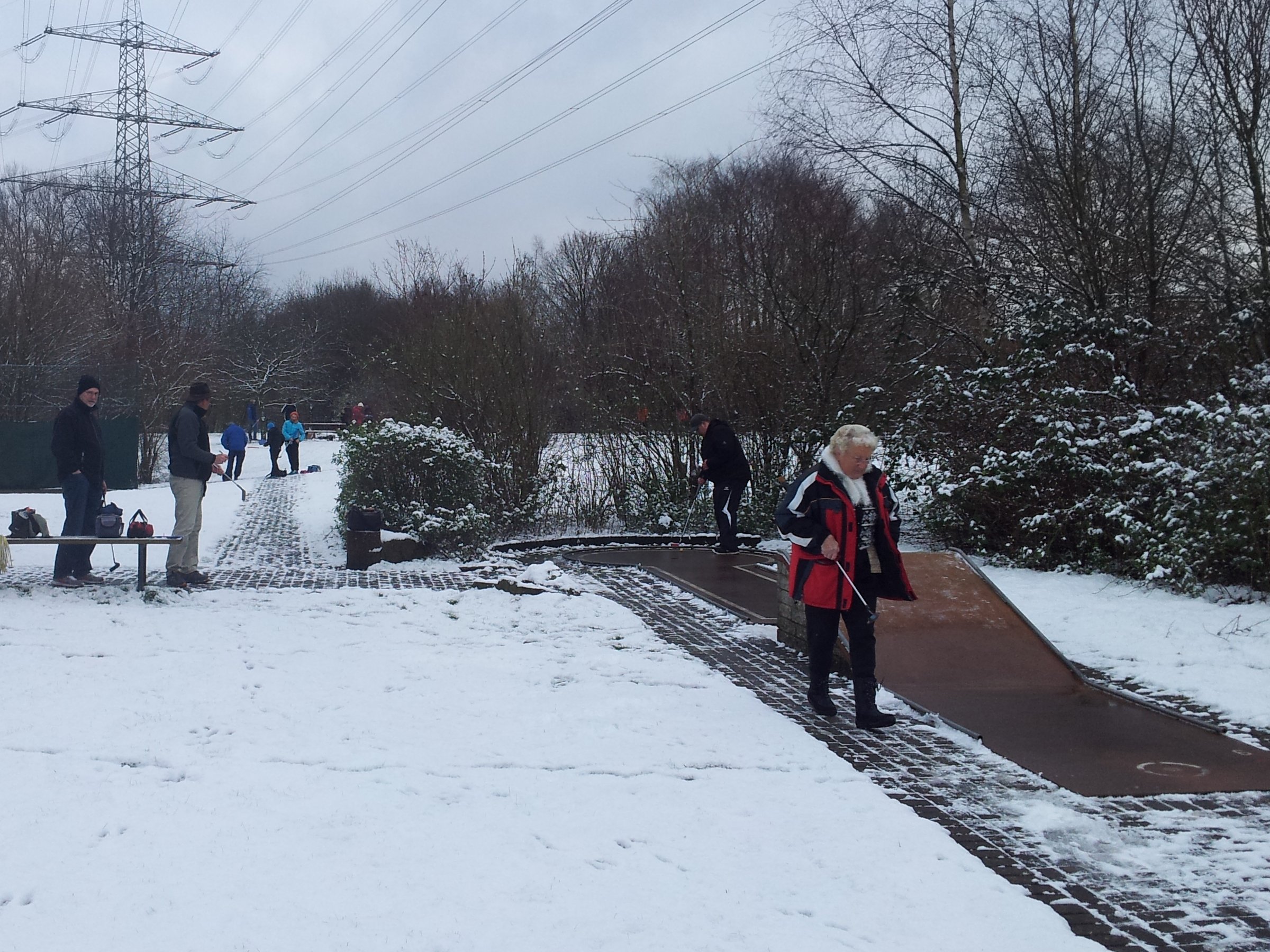 Herbeder Kombi-Matchplay - 12.11.2016 Zunächst einmal vielen Dank an die 25 Teilnehmer, die den recht kalten Bedingungen trotzten und an das "Bewirtungsteam" Marcus und Yvonne Rade u.a. für die leckere Erbsensuppe - die tat bei der Kälte richtig gut. Nun zum Turnierverlauf: Während mit Hilfe von Enteiser vor allem die Eternit-Anlage spielbar gemacht wurde, nahmen die Teilnehmer ihr Schicksal selbst in die Hand - durch einen Griff in den Lostopf. So wurden 7 3er-Gruppen (einige Teilnehmer hatten mehr oder weniger kurzfristig abgesagt) und eine 4er-Gruppe ausgelost. Diese 4er-Gruppe war dann auch eine echte Hammergruppe mit Reinhold Dammann, Philipp Lange, Winfried Lüttenberg und Stephan Behrens. In der Gruppenphase hatten die Spieler dann 2 bzw. 3 Matches hinter sich zu bringen, die ersten beiden jeder Gruppe erreichten das Achtelfinale. In diesem Achtelfinale gab es dann u.a. ein Familienduell (Martina Wehner gegen Marvin Neufeld) und ein vereinsinternes Duell zwischen den Teilnehmern vom MGC Köln (Nicole Blasek und Toni Reichert). Dieses Match entschied dann übrigens Toni im Stechen für sich ... Das knappste Match im Viertelfinale lieferten sich Stephan Behrens und Herbert Adam - Stephan entschied aber das Stechen für sich, setzte sich dann mit 4:3 im Halbfinale gegen Marvin Neufeld durch und erreichte das Finale. Dort traf er auf Winni Lüttenberg, der im Achtelfinale mit 6:4 gegen Jürgen Schmitt gewann, im Viertelfinale mit 7:1 Toni Reichert keine Chance liess und auch im Halbfinale mit 6:1 gegen Heinz Rogall klar erfolgreich war. Das Spiel um Platz 5 gewann Herbert Adam mit 6:3 gegen Sabine Klein, Heinz Rogall erreichte durch ein 5:4 gegen Marvin Neufeld Platz 3 und Stephan Behrens gewann das Turnier mit 5:3 gegen Winni Lüttenberg. Insgesamt ein schönes Turnier, das wir so gerade noch bei ausreichend Licht durchbekamen. Das Siegerfoto wurde dann im Pavillon gemacht: ![]() Hinten von links nach rechts: Marvin Neufeld, Herbert Adam, Stephan Behrens Vorn von links nach rechts: Winni Lüttenberg, Sabine Klein, Heinz Rogall Ergebnisse (PDF-Datei) |