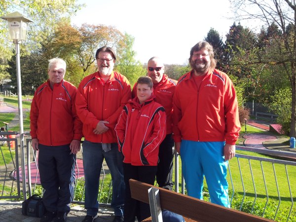 2. Spieltag der Jugendrangliste (Bericht von Dominic Urban) ![]() Der zweite Spieltag fand am 09.04.2017 in Lüdenscheid auf Eternit statt. Gastgeber war der MC 62 Lüdenscheid, der kurzfristig die Ausrichtung übernommen hatte. Das Wetter war schön sonnig, aber eine Temperaturspanne von 4 Grad bis 24 Grad Celsius machte allen zu schaffen. Die Bahnen waren Passage, Winkel, Labyrinth, Schleife, Versetzung, Sandkaten, Töter, Blitz, Pyramide, Banane, Doppelwelle, Niere, Netz, Mittelhügel, Brücke, Rohr und Teller (der war schwierig zu spielen, insgesamt fielen 7 Glocken bei 29 Teilnehmern). Es wurden 4 Runden gespielt. Den Sieg bei den Schülern holte sich der Heimspieler Kenny Schmeckenbecher mit Runden von 22+26+24+24=96. Meine Ergebnisse waren 28, 33, 35 und 25, also insgesamt 121 (aber ohne Glocke!), was zum fünften Platz (bei sechs Teilnehmern) reichte. In der Gesamtwertung bedeutet das (zusammen mit Erik Dettmer vom VfB Osnabrück) auf dem vierten Platz von neun Schülern). Der nächste Spieltag findet am 24./25.06.2017 in Neheim-Hüsten auf Abteilung 1 und 2 statt. Ergebnisse (in Bangolf) |