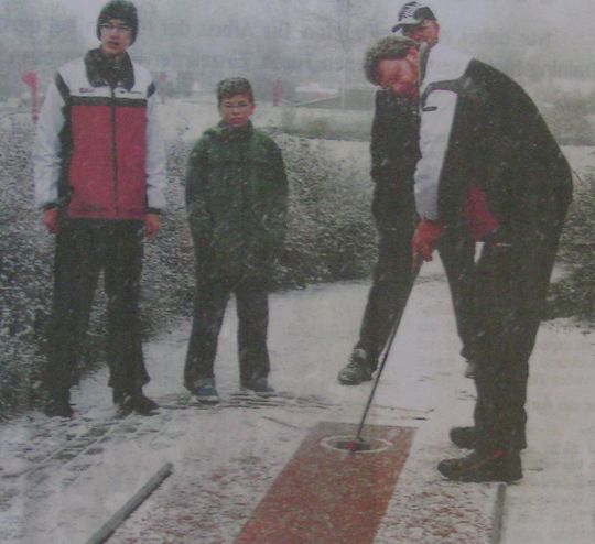 Kombi-Meisterschaft Ende Mai auf dieser Anlage spielen wollen. Aufgrund des großen Starterfeldes wurde das Turnier erstmalig auf zwei Turniergruppen aufgeteilt. Für beide Tage hatten sich 144 Einzelspieler und 22 Mannschaften angesagt. Trotz der unsicheren Wetterlage traten immerhin noch 132 Einzelspieler und 18 Mannschaften an. Bei durchweg frostigen Temperaturen aber trockenem Wetter konnten am Samstag viele Spieler die im Winterpokal gesammelten Erfahrungen umsetzen und lieferten recht ordentliche Ergebnisse. Am Sonntag führte ein kurzes Schneegestöber zu einer halbstündigen Unterbrechung. Das Spiel musste dann auf einer nassen Anlage fortgesetzt werden. Leider wurden dann nicht mehr die Leistungen des Vortages erreicht. So setzten sich auf den ersten Plätzen fast durchweg die Top-Leute des erstes Tages durch. Aus Wittener Sicht verlief das Turnier auch bei der Vergabe der Pokalplätze sehr erfolgreich. Von 29 ausgegebenen Pokalen konnten zwölf von vereinseigenen Spielern gewonnen werden. Erfreulich war auch, dass beide Stechen mit Wittener Beteiligung gewonnen wurden. Bei den Mannschaften belegte Witten III (mit Olaf Schmidt, Björn Guthörl, Christel Endberg und Klaus Gregorszewski) mit 377 Schlägen Platz eins. Knapp geschlagen mit 380 Schlägen belegte Wittens erste Mannschaft (mit Andreas Reese, Winfried Lüttenberg, Bernd Reh und Sebastian Kube) Rang zwei. Es folgten Köln (383 Schläge) und Hardenberg-Pötter (394 Schläge). Die weiteren Wittener Pokalplatzierungen: Herren: 1. Olaf Schmidt (87 Schläge, Turnierbestergebnis) 2. Andreas Reese (88 Schläge) Damen: 2. Michaela Schlottner (93) Senioren: 2. Winfried Lüttenberg (92) Seniorinnen: 1. Marlis Ruge (92) 2. Christel Endberg (93) Senioren II: 1. Dieter Lange (97) 2. Franz Tockner (99, im Stechen) Seniorinnen II: 1. Doris Thurmann (97, im Stechen) Jugend: 4. Sebastian Kube (94) ![]() Jetzt bloß den Durchblick behalten: Auch MGC-Akteur Andreas Reese (re.) hatte mit der Witterung in Herbede zu kämpfen, landete aber immerhin auf Rang zwei. Foto: Werner Liesenhoff | |