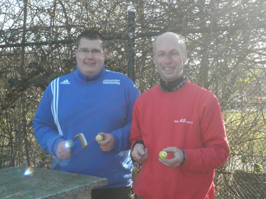 ![]() Sieger: Stephan Behrens (li.) und NGC-Ass Theo Klein. Foto: privat Minigolf MGC "AS" Witten: Wolf und Jezierski ebenfalls erfolgreich Herbede. Ordentlichen Zulauf bekamen die Minigolf-Anlagen am Freizeitzentrum Kemnader See. Am vergangenen Wochenende trafen sich gut 100 Minigolfer zum Saisoneröffnungsturnier des MGC „AS“ Witten. Obwohl am Samstag die stellenweise noch leicht vereisten Bahnen besonders auf der Eternitanlage den Spielern zu schaffen machten, wurden trotzdem insgesamt einige sehr gute Ergebnisse erzielt. Auf der Eternitanlage war Lokalmatador Theo Klein mal wieder der beste Akteur: Ihm gelangen Runden von 24, 23, 24 und 22 Schlägen, was bei den Senioren zum Sieg mit vier Schlägen Vorsprung reichte. Auf den längeren Betonbahnen war es knapper: Dort spielte der Zweitligaspieler Stephan Behrens (1. MGC Köln) Runden von 26, 30 und 28 Schlägen (Gesamtzahl: 84 Schläge) und siegte in der Herrenkonkurrenz mit dem hauchdünnem Vorsprung von einem Schlag vor seinem Vereinskameraden Felix vom Bruch (85). Auch der Mannschaftssieg ging – wie im Vorjahr - an die Kölner, die das Heimteam auf den zweiten Platz verwiesen. Die Titel bei den Schülern und Jugendlichen gingen an die für den BGSC Castrop spielenden Niklas Pelz und Philipp Lange, Lukas Eisleben (1. MGC Köln) und Philipp Deutschmann (BGSC Gladbeck). Für die Wittener siegten neben Theo Klein noch Manuela Wolf (Damen) und Marie-Luise Jezierski (Seniorinnen Altersklasse 2). | |
